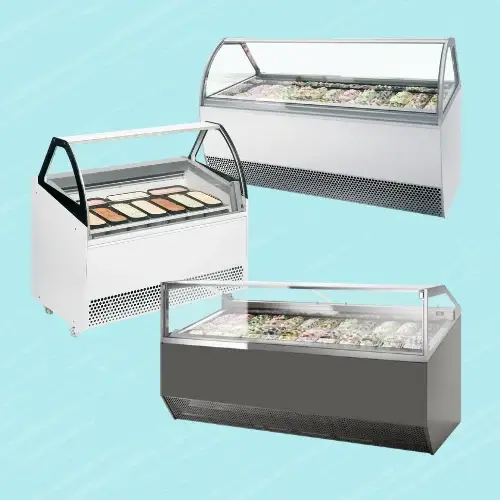 A ventilated soft scoop ice cream display freezer is similar to other types but focuses on enhanced ventilation. Because of this, temperature regulation is much more consistent throughout the freezer, and humidity levels are kept as low as possible. With more consistent temperatures throughout the display freezer, the ice cream will maintain its consistency better, rather than constantly melting or refreezing. Humidity regulation also drastically reduces unsightly ice crystals that inevitably build up on top of your flavours.