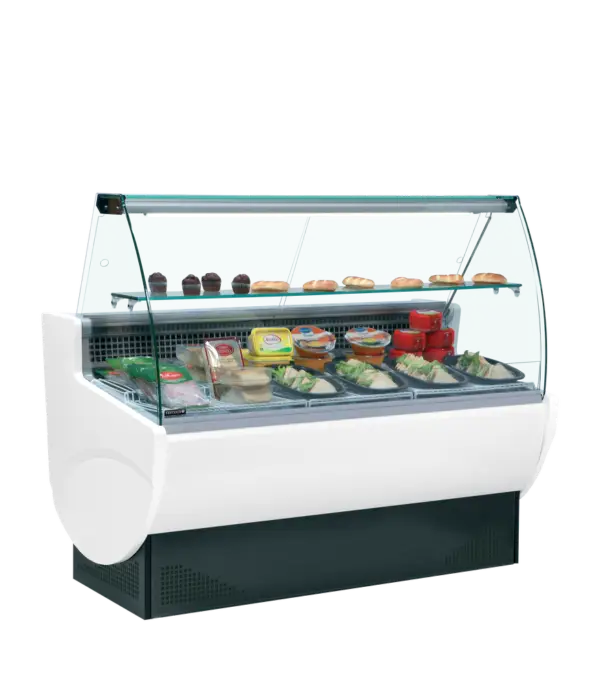 The TAVIRA II range are fully automatic serve over counters, ideal for displaying refrigerated goods. Featuring static cooling, adjustable feet for stability, and interior light controlled by a switch. The digital controller has a temperature display for easy monitoring. TEFCOLD’s range of serve over display counters helps optimise service and create focal points in delis, cafรฉs, and shops, showcasing your products while keeping them fresh.