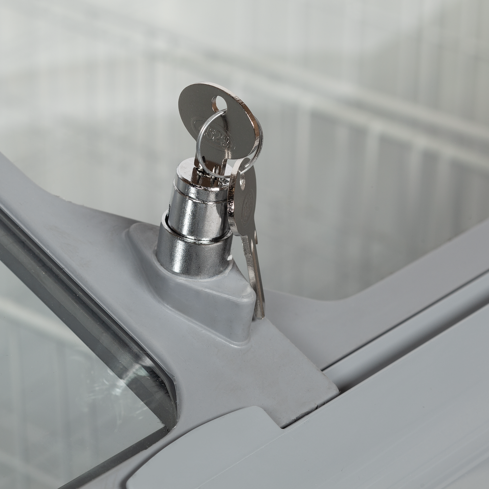 Elegant chest freezer with curved sliding glass lids