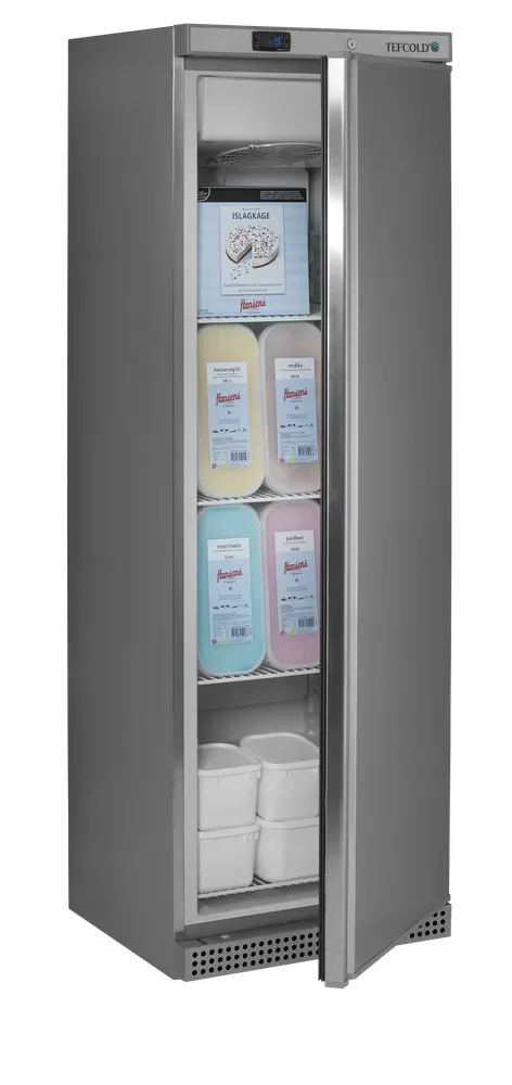The UF-VS range of freezers is the ventilated version of our stainless steel storage freezers. It comes in various sizes. The freezer has an effective ventilated refrigeration system, which ensures an even temperature throughout the cabinet. Set the temperature on the easy-to-use digital thermostat display. You can customise the freezer to fit your needs with adjustable shelves. Defrost happens automatically.